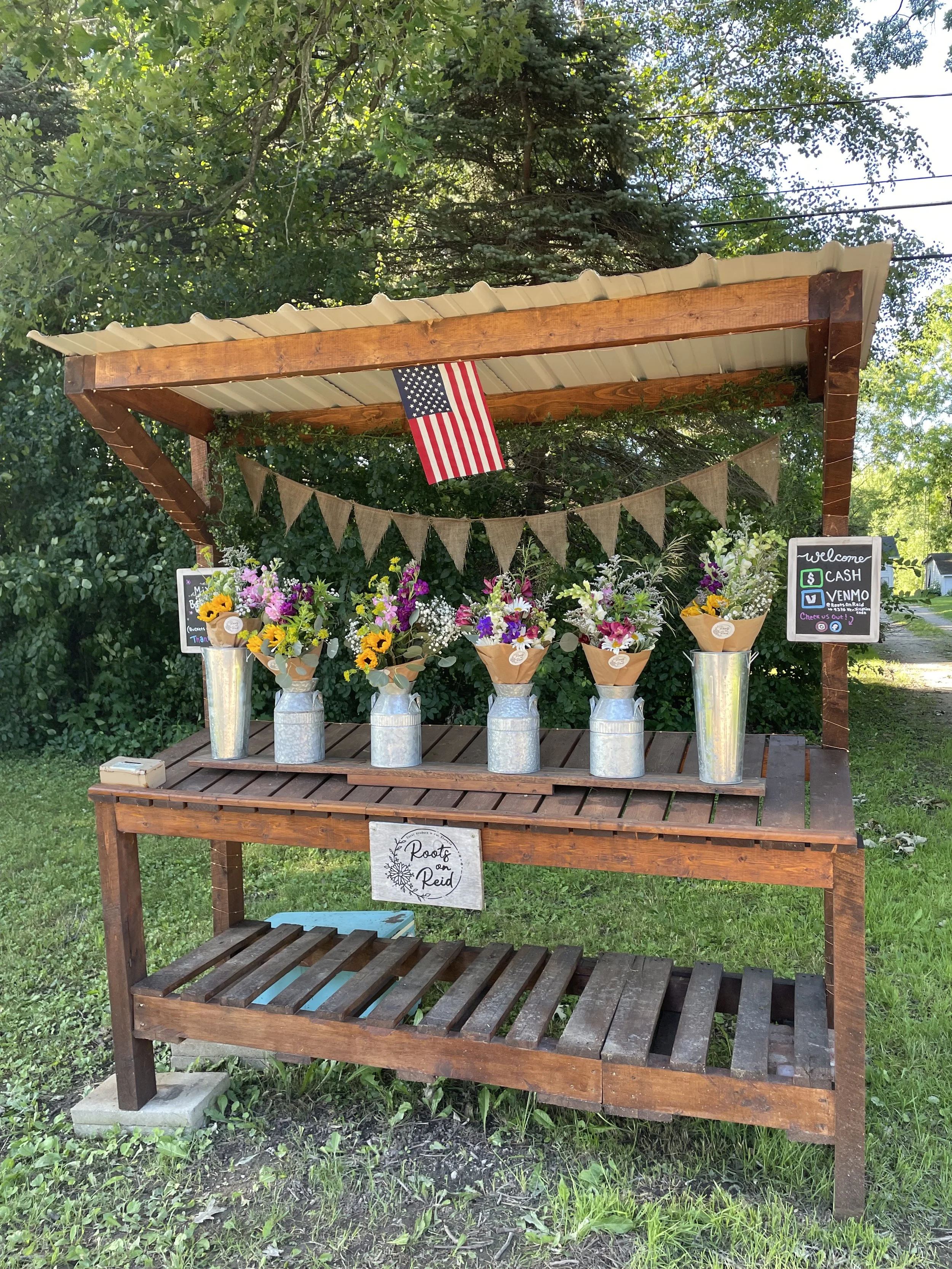 As we cleared out the garden space, we brainstormed ideas of the farmstand we had also been dreaming of. I pitched a million random name ideas as I yanked up miles of old weed mat (or at least what felt like miles!) As roots strongly held down that weed mat, I said, “ROOTS…Roots on Reid!”